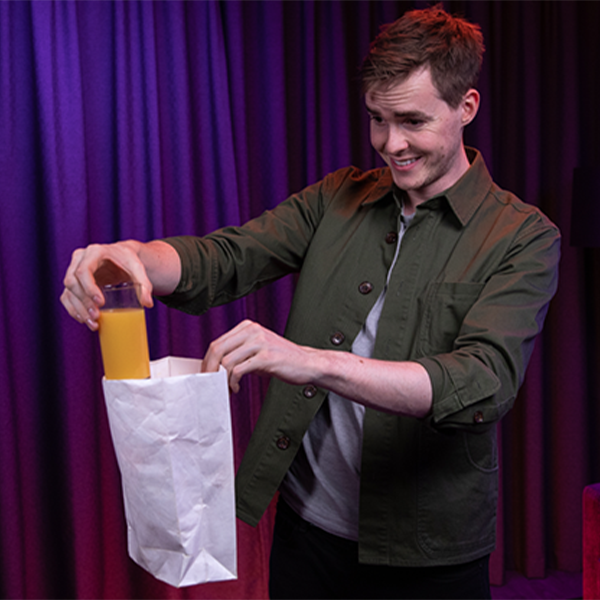 Normalmente, en este punto, tendrías que precargar en secreto el vaso de líquido dentro de la bolsa antes de hacerlo "aparecer".