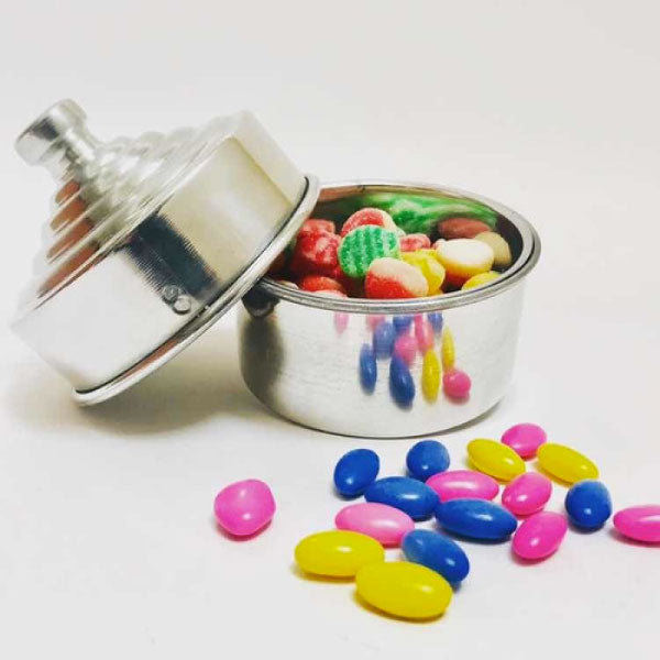 El mago muestra una pequeña cacerola de aluminio (12cm de diámetro) y la abre, mostrando...