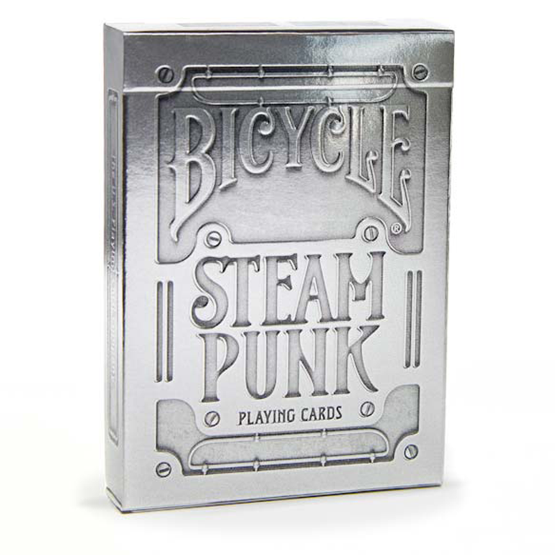 Desde el brillo metálico, relieve en la caja hasta hermosas cartas, Steampunk plateado es evocador de la afinidad de su homónimo hacia el brillo de ruedas dentadas y engranajes complejos. Silver Steampunk contiene ilustraciones originales en el As de Picas, Joker, de nuevo diseño.