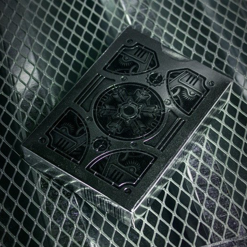 La caja del mazo de juego en sí está grabado en contornos pulidos, metálicos. Orgullosamente Hecho en los EE.UU. en los United States Playing Card Company (USPCC) en papel de alta calidad, con un acabado de primera.