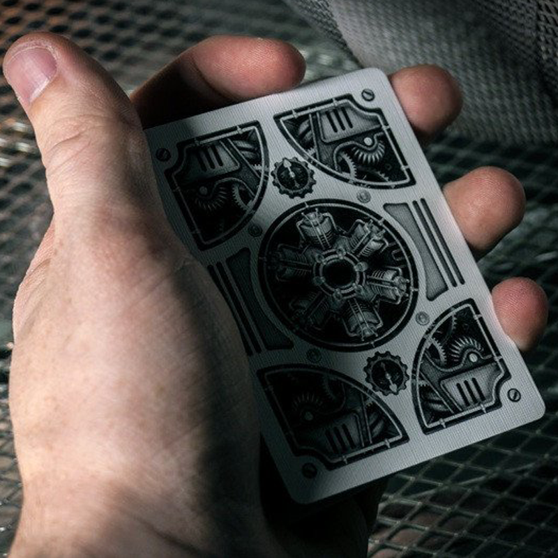 El Steampunk Silver Edition cuenta con una mirada más profunda en la complejidad de una obra maestra. Construido y diseñado con 12 millones de polígonos 3D. Todos los detalles fueron tomados en cuenta para la fabricacion de esta hermosa baraja. Una colaboración conjunta entre la compañía creadora de los Estados Unidos de Naipes y Theory11.