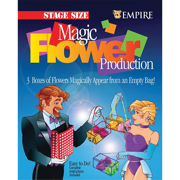 Inmediatamente, mete tu mano en la bolsa, y produce de ella una increíble caja brillante con dos flores.